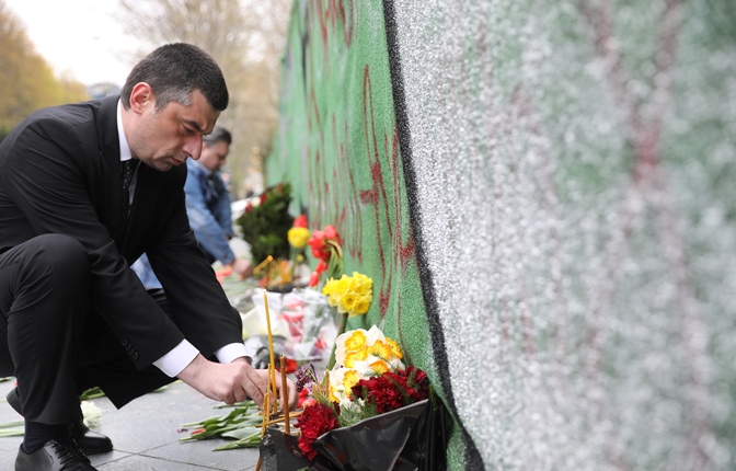 არჩილ თალაკვაძე, საპარლამენტო უმრავლესობის წევრებთან ერთად, 9 აპრილის ბაღში, 1989 წლის 9 აპრილს დაღუპულთა მემორიალთან იმყოფებოდა. პარლამენტის წევრებმა მემორიალი ყვავილებით შეამკეს.