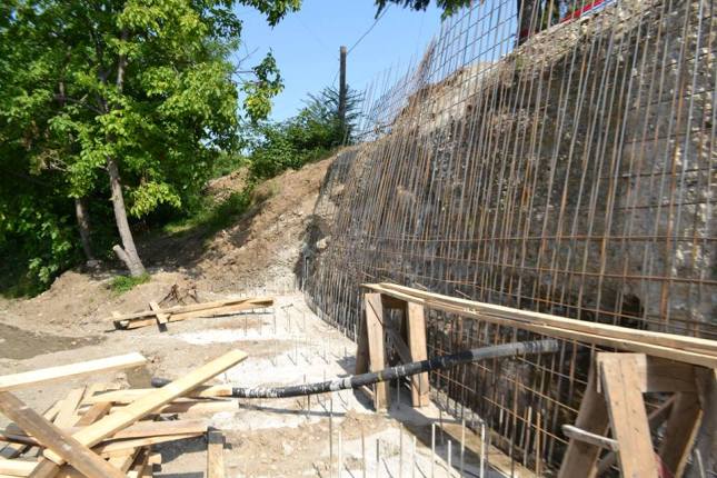 გურჯაანში ვაჟა-ფშაველას ქუჩის მიმდებარედ საყრდენი კედლის გამაგრება მიმდინარეობს