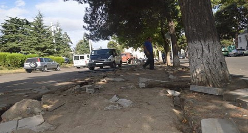 ბოლნისის ცენტრალუქრ ქუჩაზე ტროტუარების სარეაბილიტაციო სამუშაოები დაიწყო