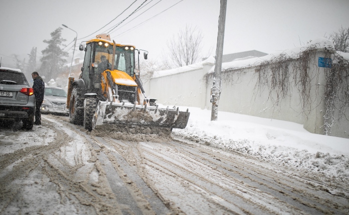 დაბალი ტემპერატურის გამო დედაქალაქში გზის გაწმენდის სამუშაოები გრძელდება